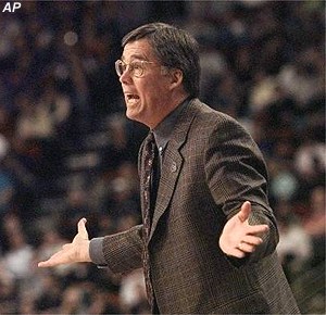 Mike Montgomery reacts to play.