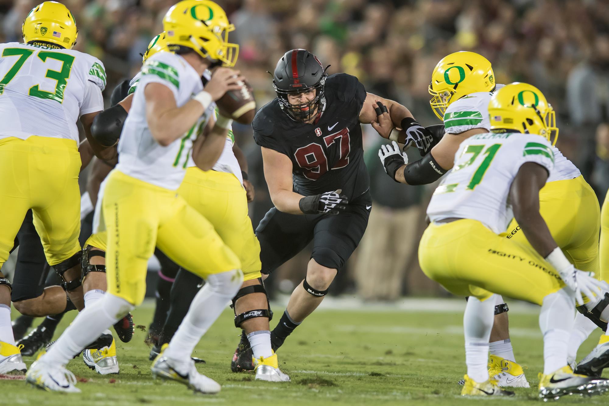 • Five tackles (three solo) and 0.5 sack at Oregon