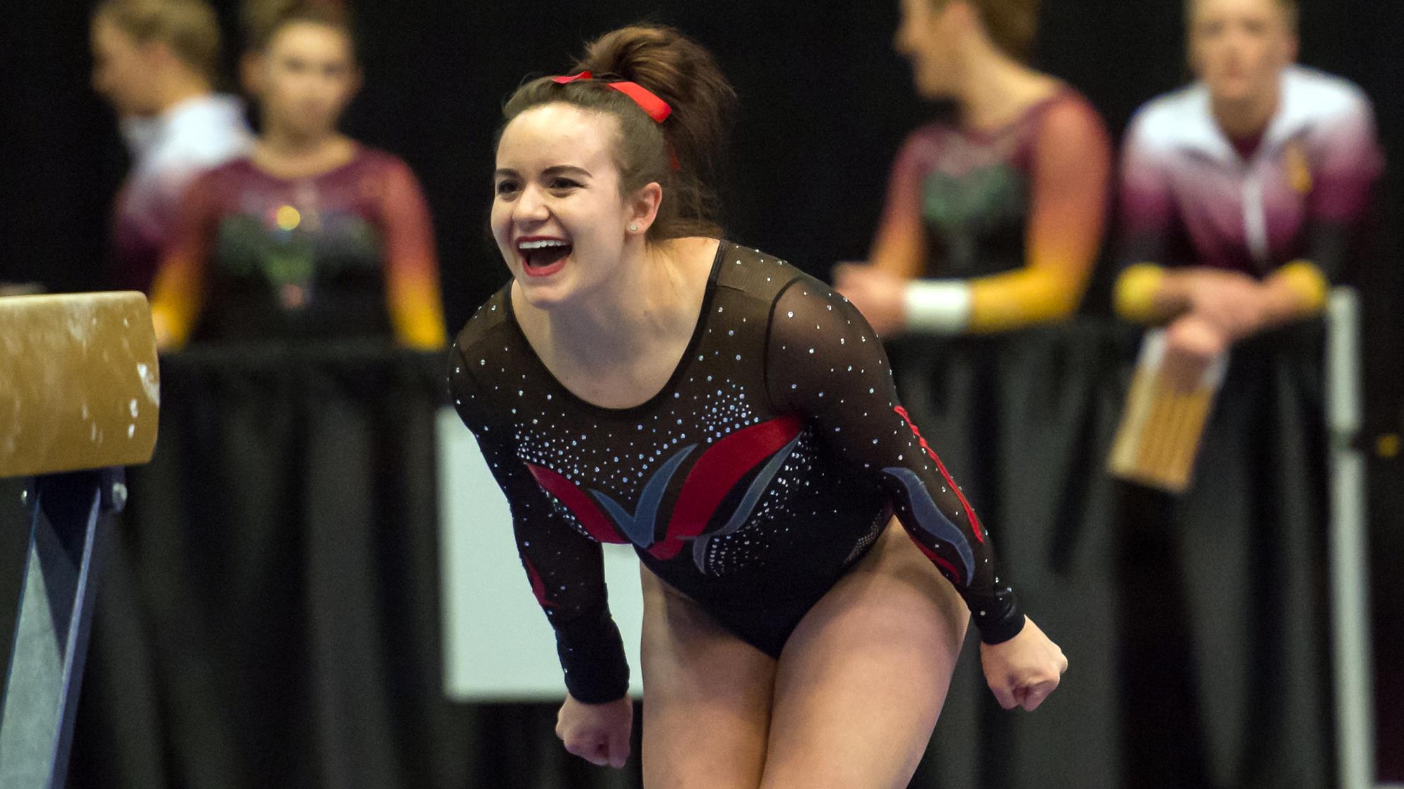 - Tied for the first on beam with a 9.850 at Arizona State (Feb. 18)